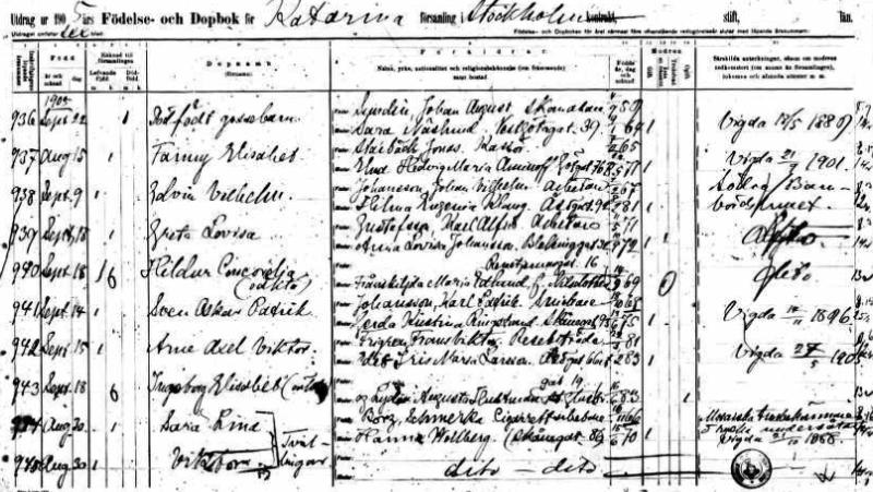 1905 Acte de naissance N°939 (Stockholm, Suède)