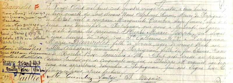 1884 Acte de naissance (Perpignan, France)