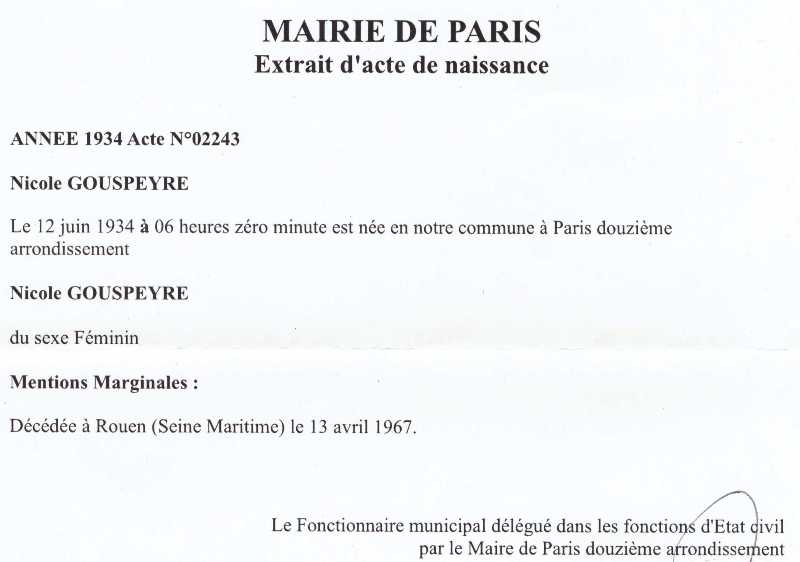 1934 Acte de naissance (Paris 12ème, France)