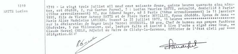 1972 Acte de décès (Clichy-la-Garenne, France)