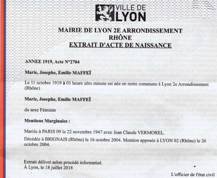 1919 Acte de naissance (Lyon 2ème, France)