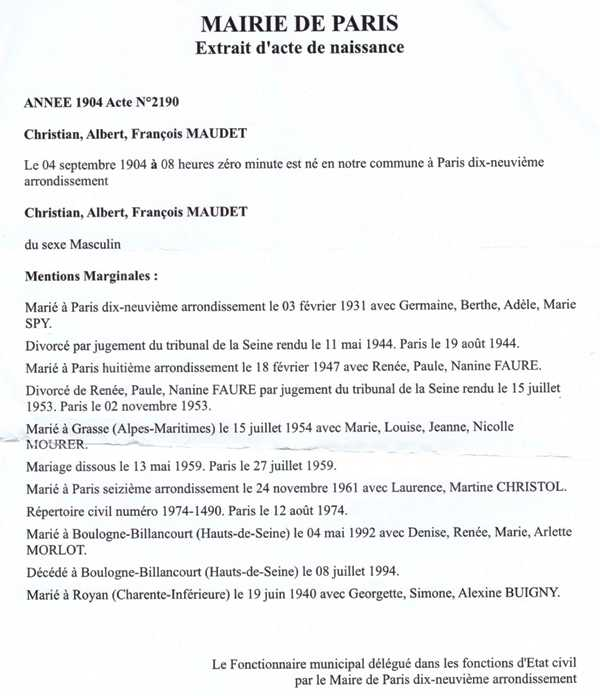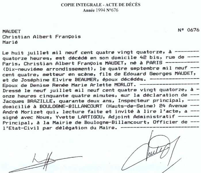 1994 Acte de décès (Boulogne-Billancourt, France)