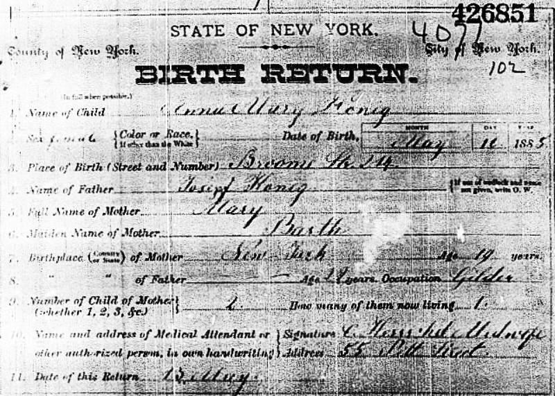1885 Acte de naissance (New York, New York, USA)