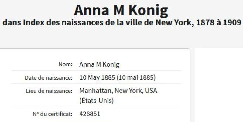 1885 Retranscription de l’acte de naissance (New York, New York, USA)