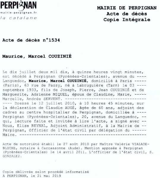 2010 Acte de décès (Perpignan, France)