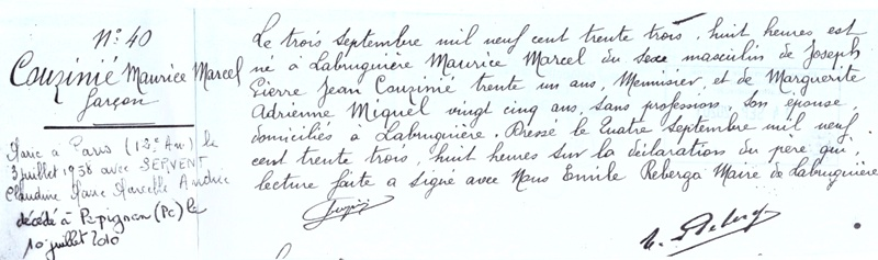 1933 Acte de naissance (Labruguière, France)