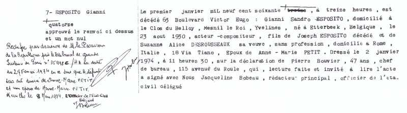 1974 Acte de décès (Neuilly-sur-Seine, France)