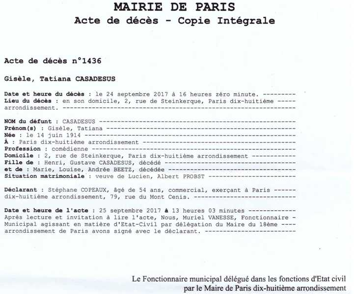 2017 Acte de décès (Paris 18ème, France)