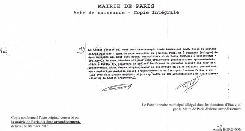 1937 Acte de naissance (Paris 10ème, France)