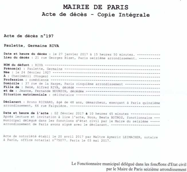 2017 Acte de décès (Paris 16ème, France)
