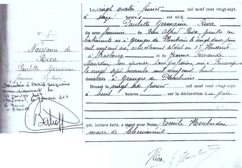 1927 Acte de naissance (Cheniménil, France)