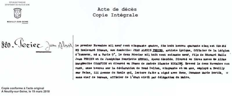 1954 Acte de décès (Neuilly-sur-Seine, France)