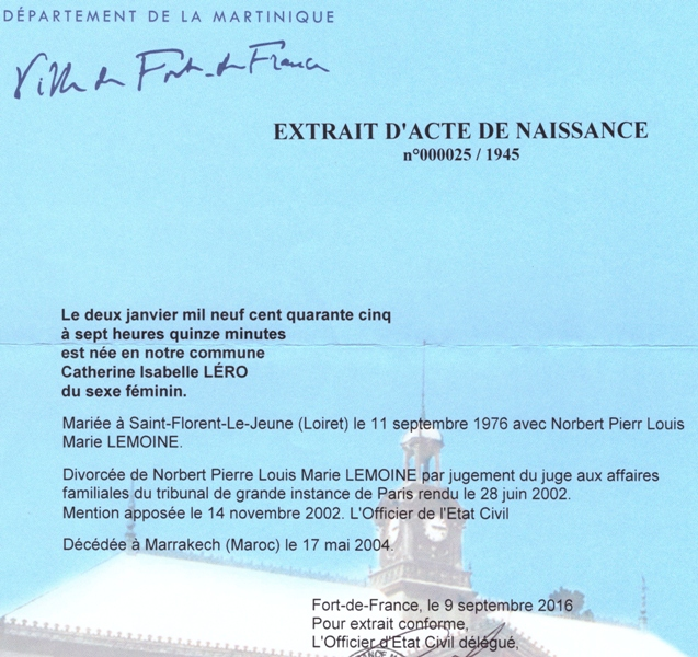 1945 Acte de naissance (Fort-de-France, Antilles Françaises)