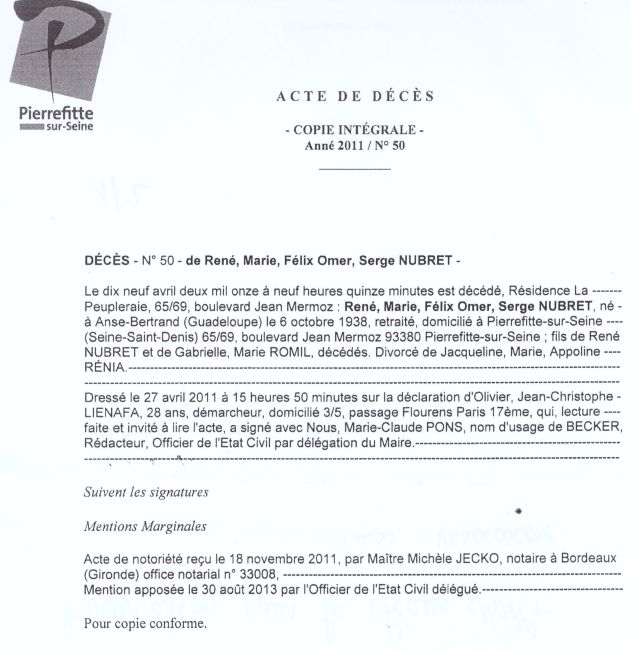 2011 Acte de décès (Pierrefitte-sur-Seine, France)