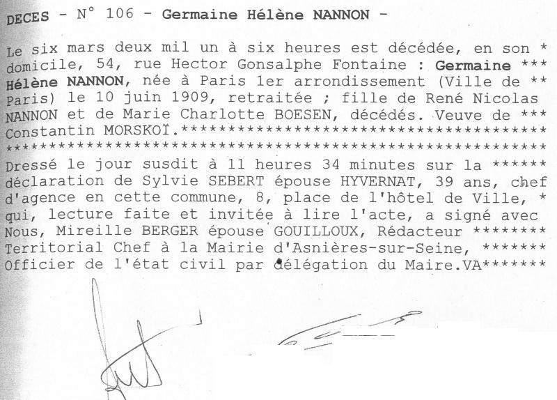2001 Acte de décès (Asnières-sur-Seine, France)