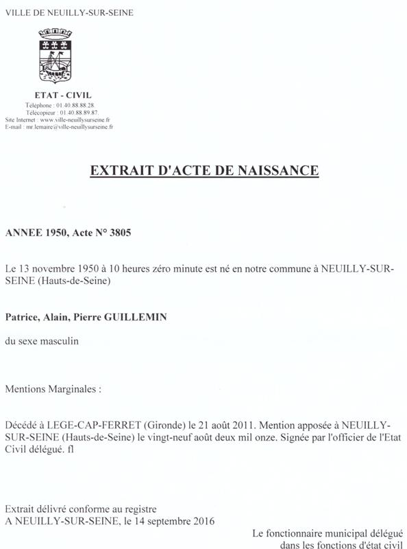 1950 Acte de naissance (Neuilly-sur-Seine, France)