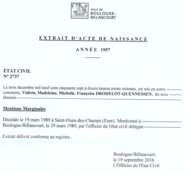 1957 Acte de naissance (Boulogne-Billancourt, France)