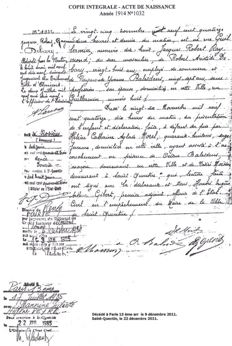 1914 Acte de naissance (Saint-Quentin, France)