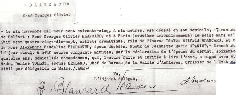 1965 Acte de décès (Asnières-sur-Seine, France)