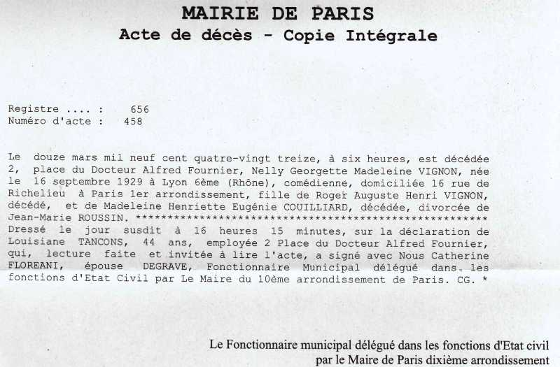 1993 Acte de décès (Paris 10ème, France)