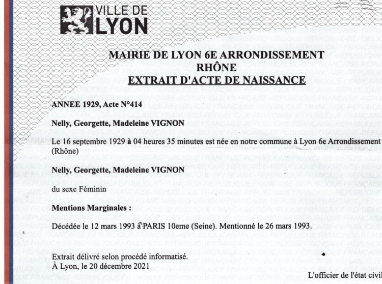 1929 Acte de naissance (Lyon 6ème, France)