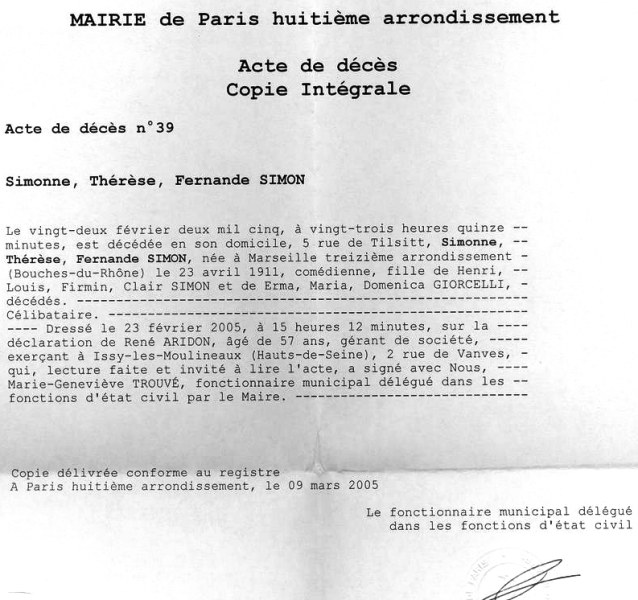 2005 Acte de décès (Paris 8ème, France)