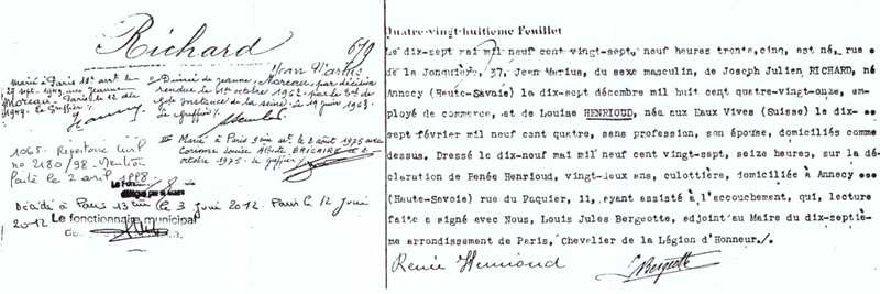 1927 Acte de naissance (Paris 17ème, France)