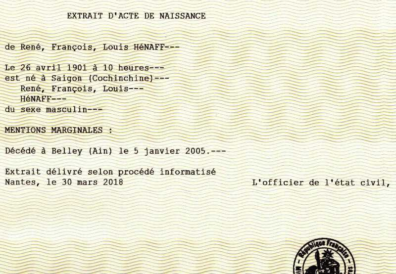 1901 Acte de naissance (Saïgon, Indochine Française)