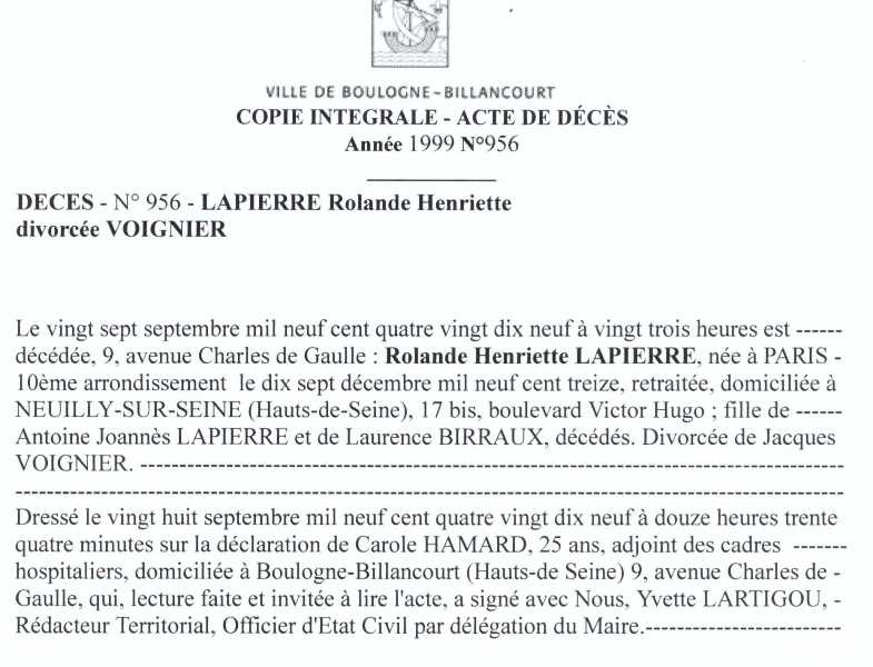 1999 Acte de décès (Boulogne-Billancourt, France)