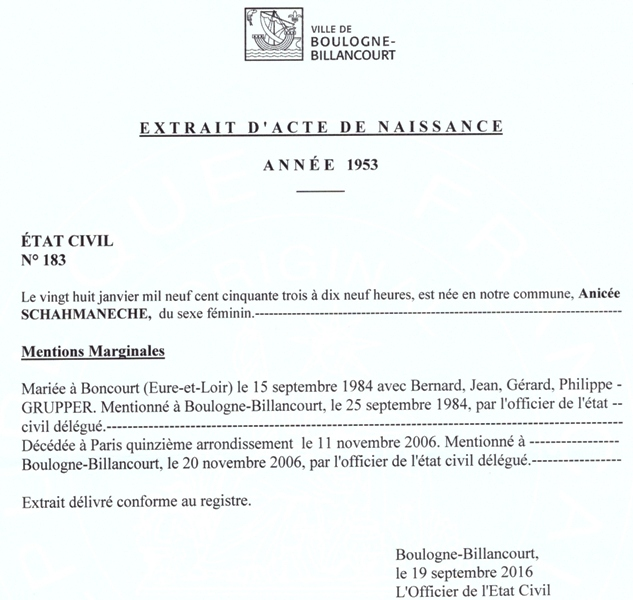 1953 Acte de naissance (Boulogne-Billancourt, France)