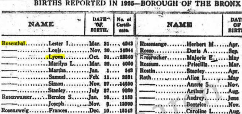 1925 Acte de naissance (Le Bronx, New York, USA)
