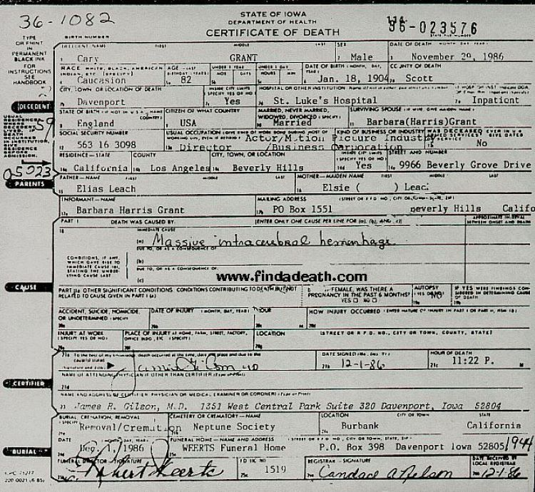 1986 Acte de décès (Davenport, Iowa, USA)