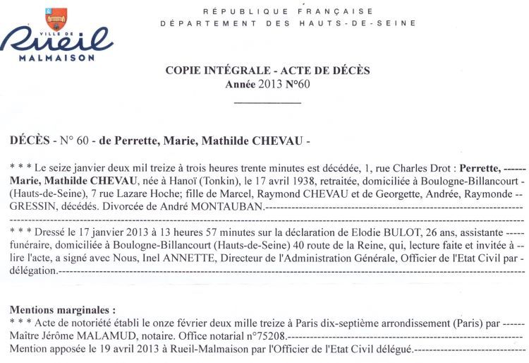2013 Acte de décès (Rueil-Malmaison, France)