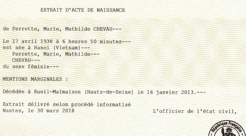 1938 Acte de naissance (Hanoï, Indochine Française)
