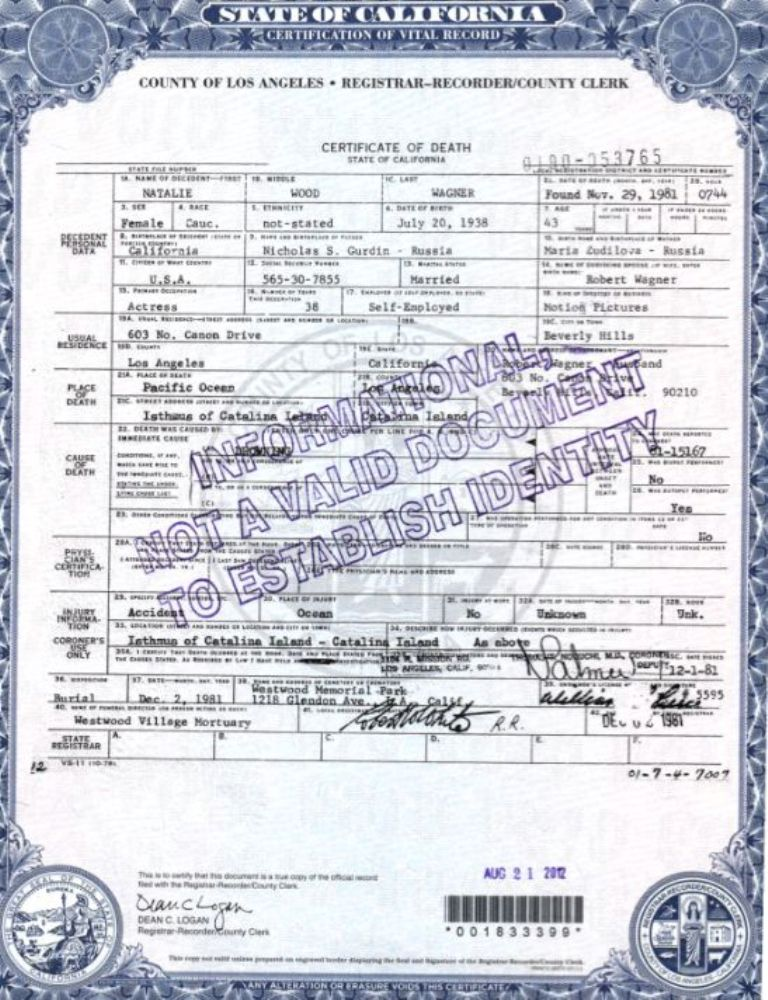 1981 Acte de décès (Baie d’Isthmus, Californie, USA)