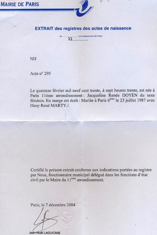 1930 Acte de naissance (Paris 11ème, France)