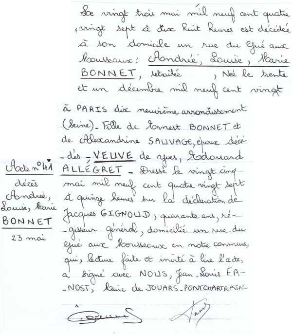 1987 Acte de décès (Jouars-Pontchartrain, France)
