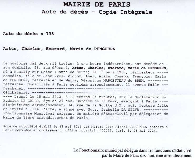 2013 Acte de décès (Paris 18ème, France)