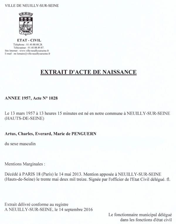 1957 Acte de naissance (Neuilly-sur-Seine, France)