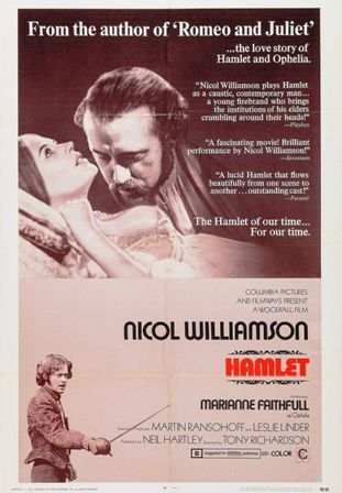 ![]() 1968 Hamlet (Shakespeare’s Hamlet) de Tony Richardson avec Nicol Williamson, Judy Parfitt & Marianne Faithfull | ![]() 1968 Le lion en hiver (the lion in winter) de Anthony Harvey avec Katharine Hepburn, Peter O’Toole & Nigel Terry | ![]() 1969 Le miroir aux espions (the looking glass war) de Frank Pierson avec Christopher Jones & Ralph Richardson | ![]() 1971 Commando pour un homme seul (when eight bells toll) de Etienne Périer avec Robert Morley | ||
