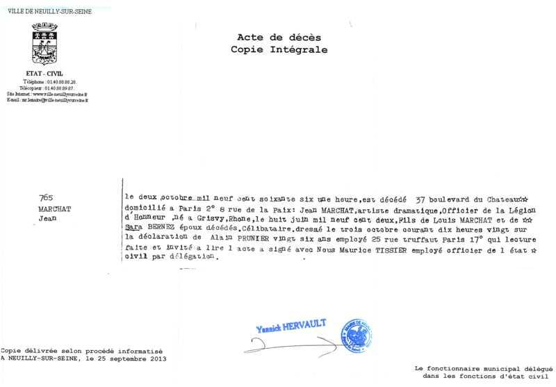 ![]() 1943 Le bossu – de Jean Delannoy avec Jean Marconi | ![]() 1951 Ils étaient cinq – de Jacques Pinoteau | ![]() 1953 L’ennemi public N°1 – de Henri Verneuil avec Tino Buazelli | ![]() 1966 Acte de décès (Neuilly-sur-Seine, France) | ||