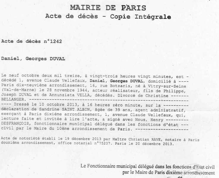 2013 Acte de décès (Paris 10ème, France)