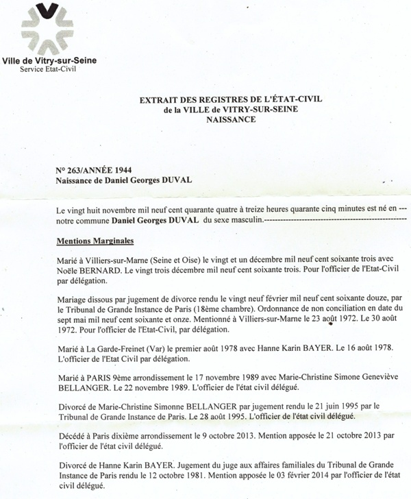 1944 Acte de naissance (Vitry-sur-Seine, France)