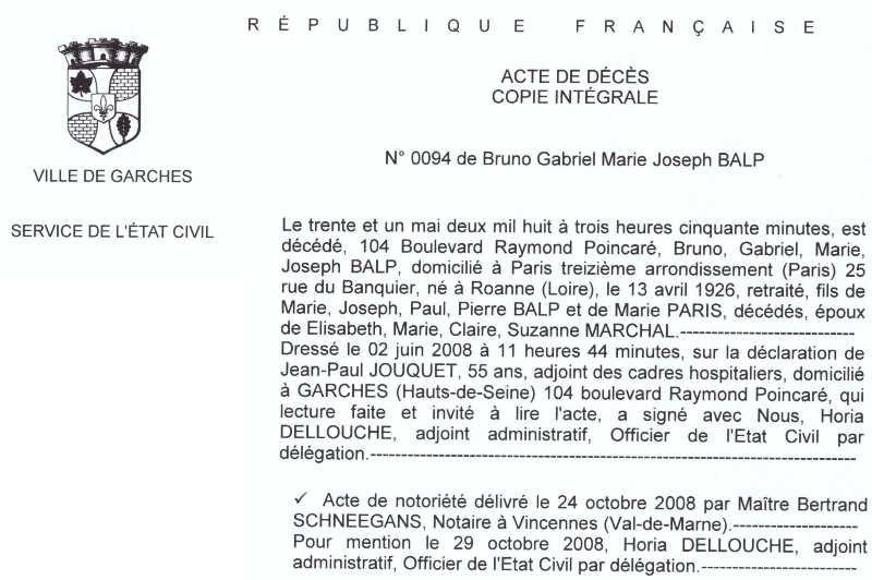 2008 Acte de décès (Garches, France)