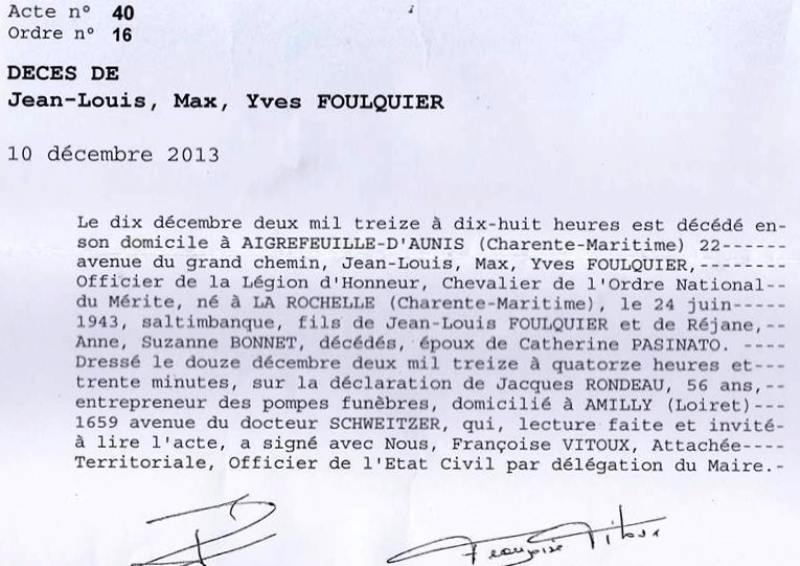 2013 Acte de décès (Aigrefeuille-d’Aunis, France)