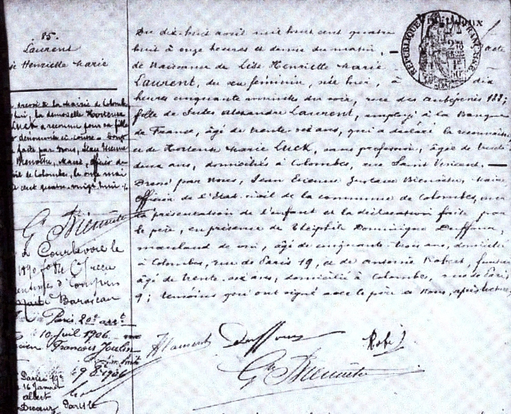 1888 Acte de naissance (Colombes, France)