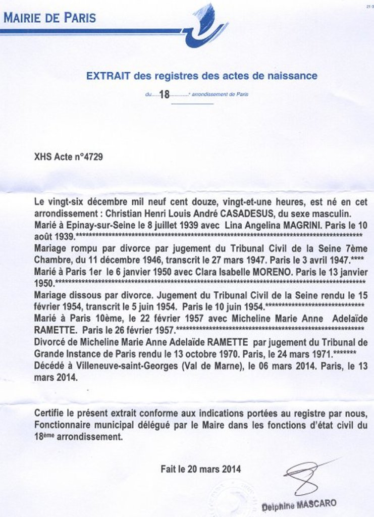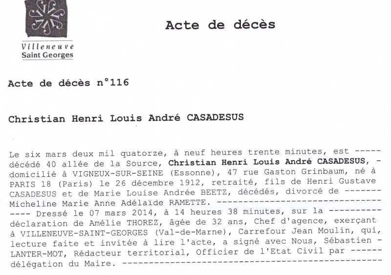 2014 Acte de décès (Villeneuve-Saint-Georges, France)