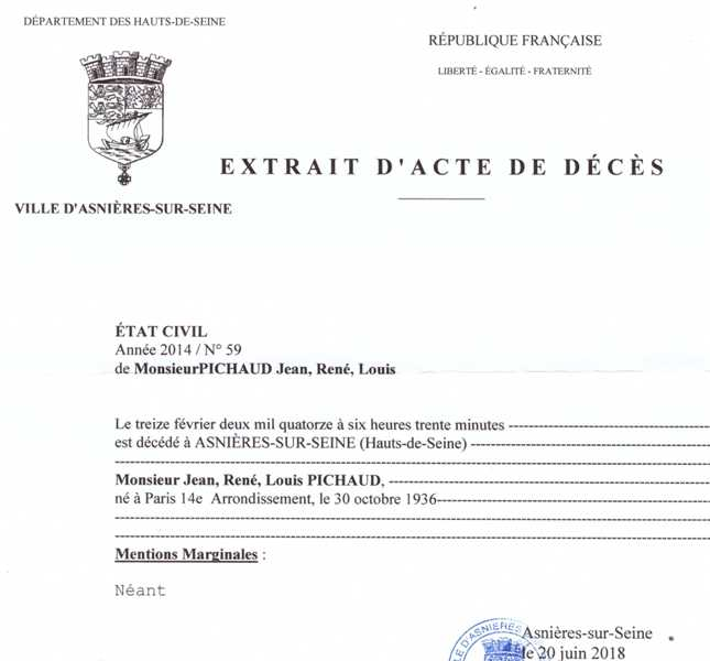 2014 Acte de décès (Asnières-sur-Seine, France)
