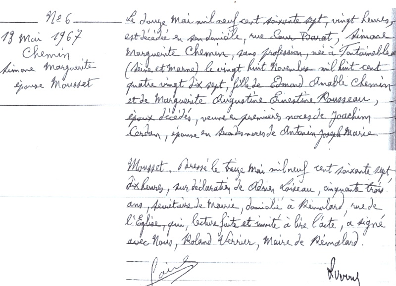 1967 Acte de décès (Rémalard, France)