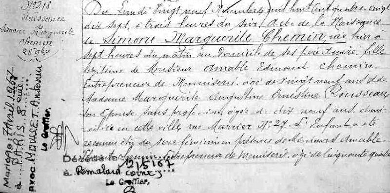 1897 Acte de naissance (Fontainebleau, France)